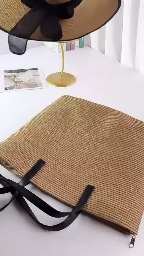 Topi Pantai Lebar Bahan Raffia Premium List Hitam / Topi Pantai Lebar / Topi Pantai lipat CAHAYA T92 Best Seller