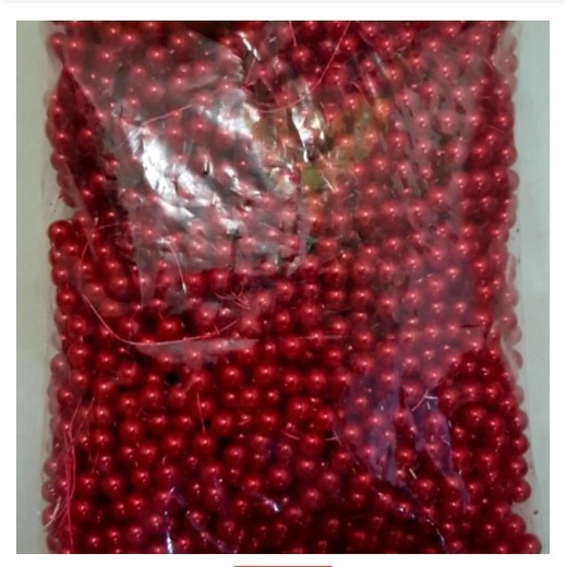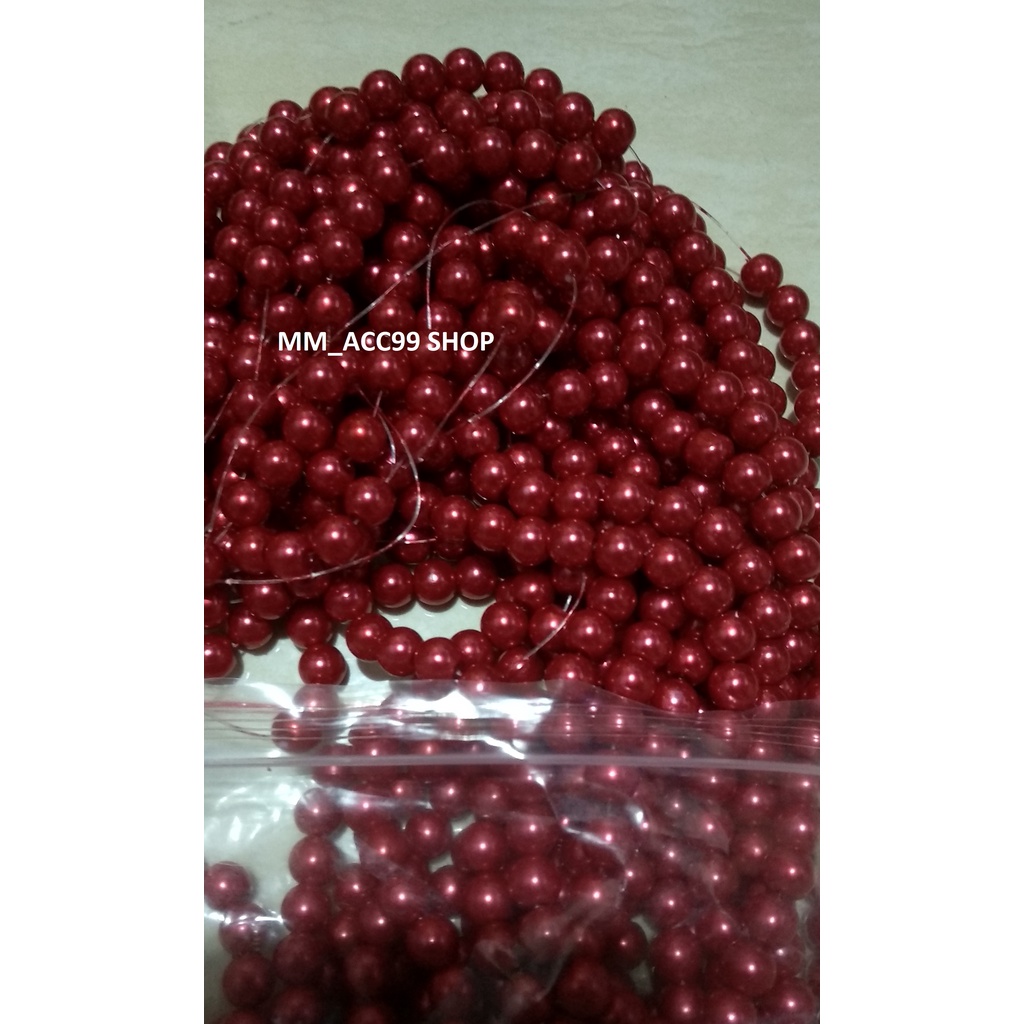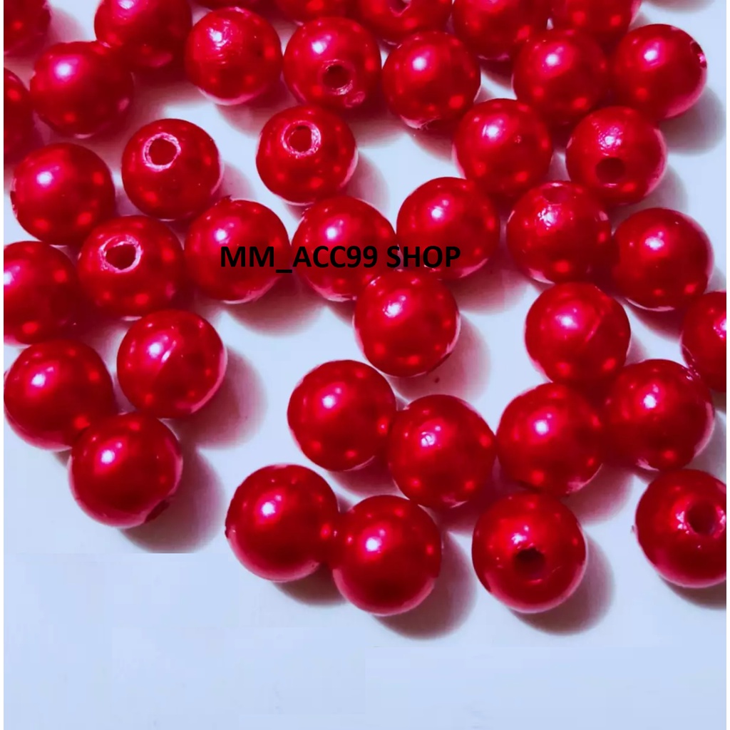 100 Gram Payet Mote Manik Mutiara Sintetis 8mm Bulat Besar Mutsin Berat Kwalitas Super Warna Merah