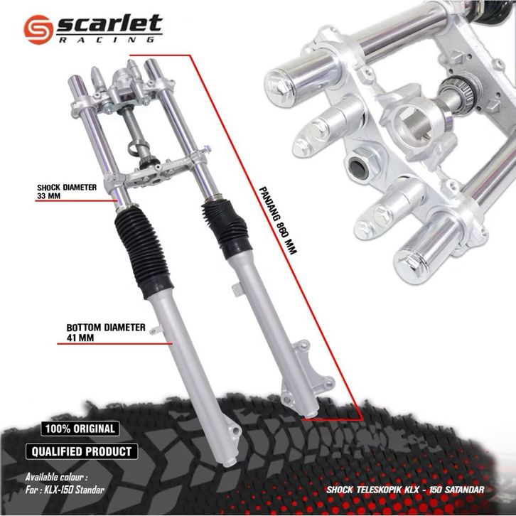 Shock Depan Assy / Shock Depan Teleskopik + Bearing KLX 150 Merk SCARLET RACING USD KLX 150