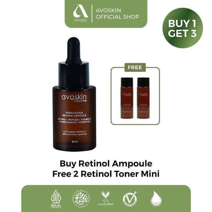 serum retinol Bundle Special Toko Mama Gigi BUY 1 GET 3 Miraculous Retinol Ampoule 30ml + 2pcs Retinol Toner 20ml