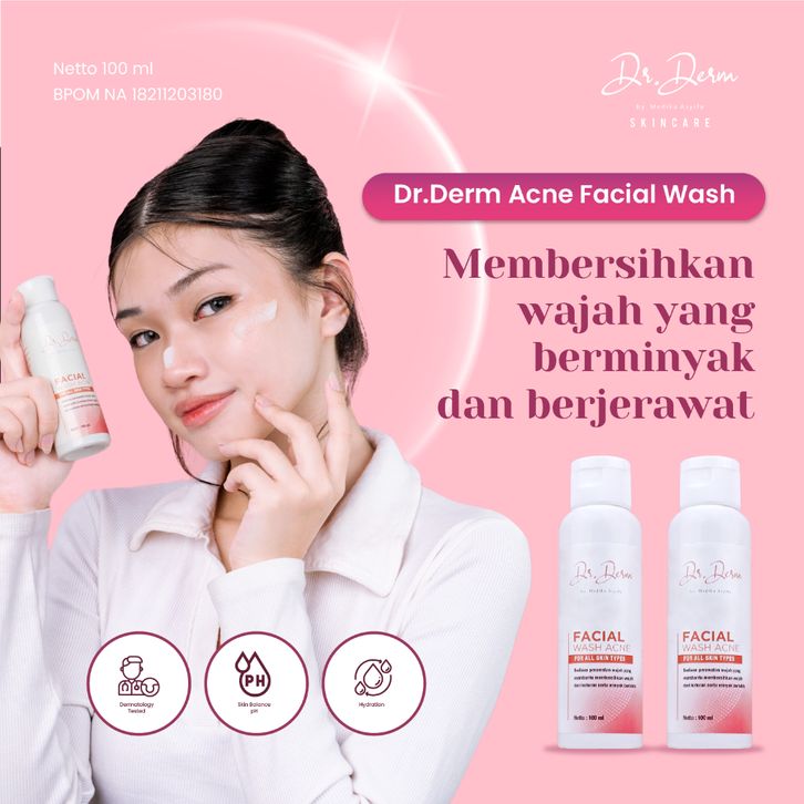 Dr. Derm Acne Facial Wash | Sabun Cuci Wajah Kulit Berjerawat dan Kulit Berminyak | 100ml facial wash hada labo