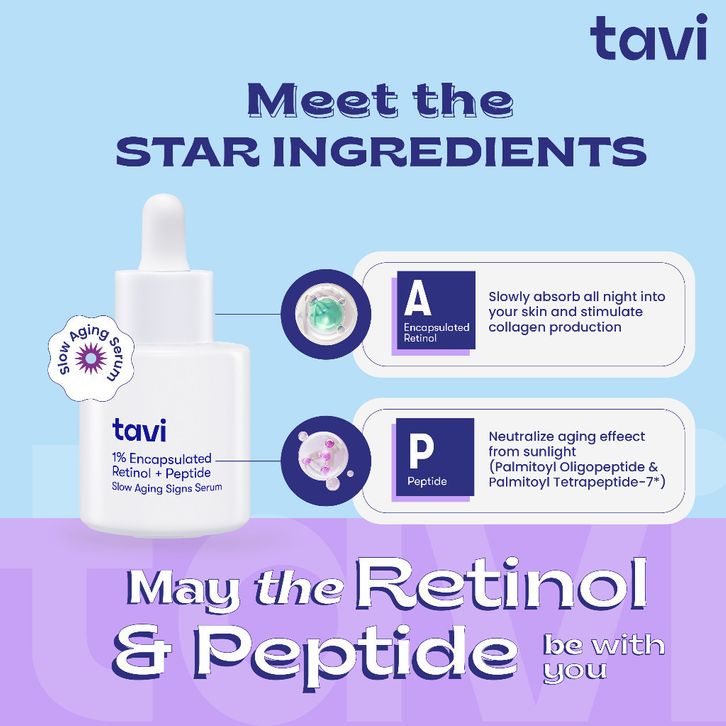 serum retinol TAVI 1 Encapsulated Retinol + Peptide Slow Aging Signs Serum 30 ml | Merah Jingga Official