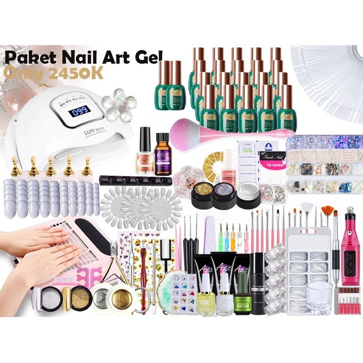Nail Art Lengkap PAKET NAIL ART MEWAH 20WARNA KUTEK GEL / PAKET USAHA NAIL ART / PAKET NAIL ART LENGKAP