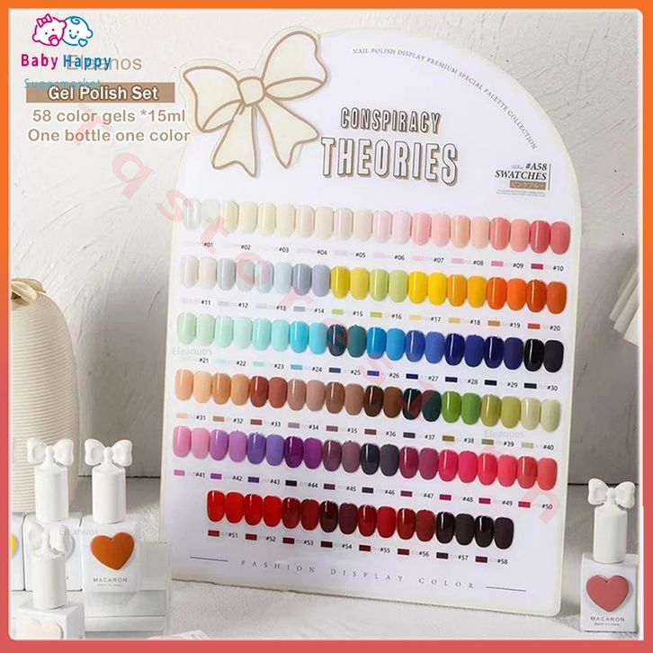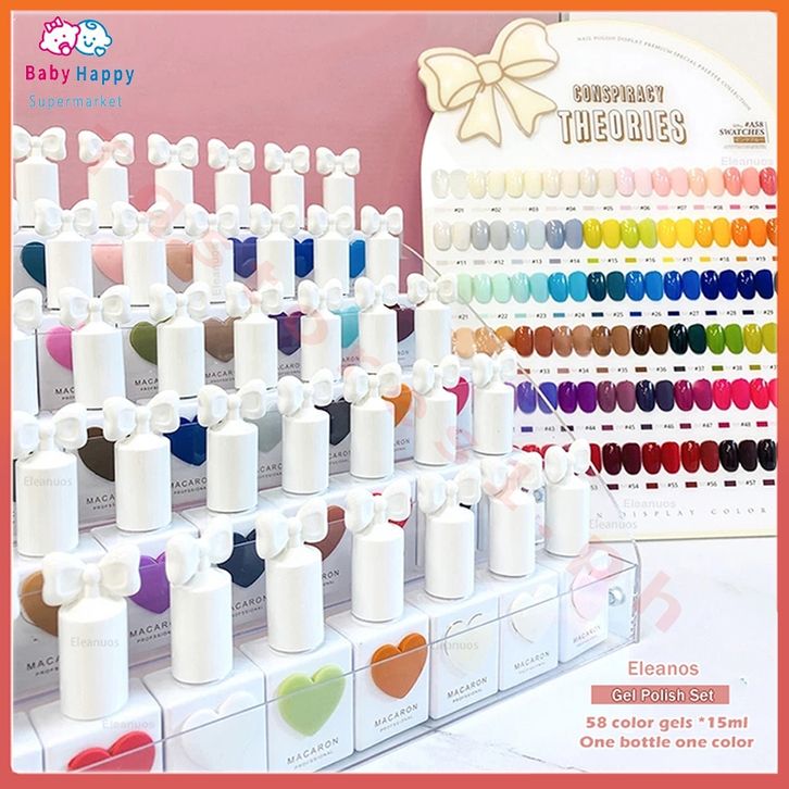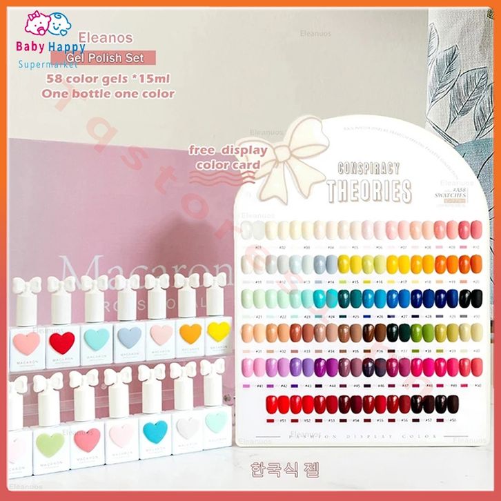 Nail Art Lengkap 2024 Populer 15MILI 58 Warna Korea Macaron Sweetheart Gel Set Macaron Set Cat Kuku Gel dengan Grafik