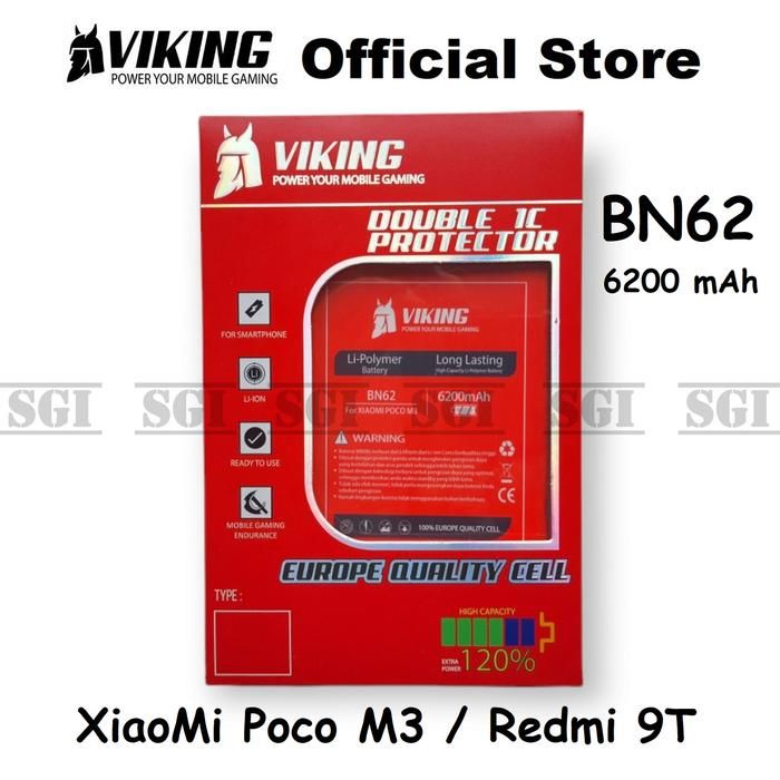 Baterai VIKING Double Power XiaoMi Poco M3 Redmi 9T BN62 Pocophone Handphone HP BN 62 Batre Batrai Battery Phone