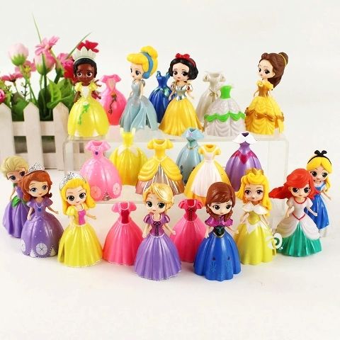 Princess Frozen Sofia Ganti Baju 12 Dress 24 Mainan Figure Set Miniatur Topper FG711