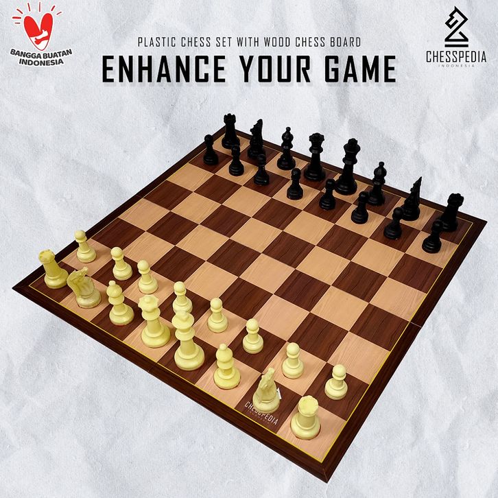 NEW Chesspedia Paket Bidak Catur Plastik + Papan Catur Lipat 4 / 8 Motif Full Serat ugals