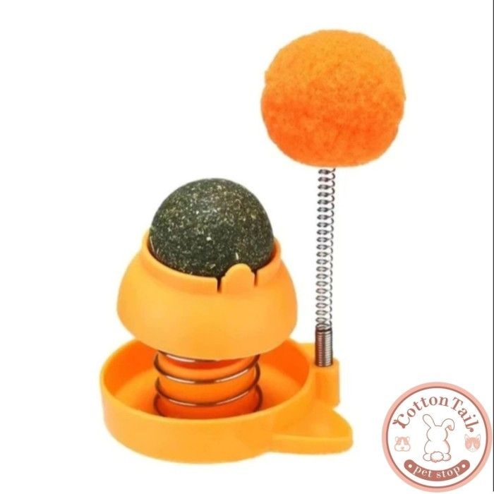 MAINAN KUCING CATNIP BULAT DENGAN PER BOLA BULU - MAINAN TEMPEL CATNIP DENGAN BOLA BULU