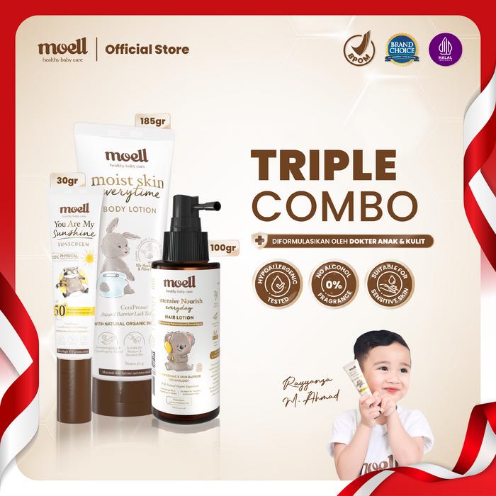 Moell Bundling Hair Lotion 100ml & Sunscreen 30ml & Body Lotion 185ml - BUNDLE NO FREE