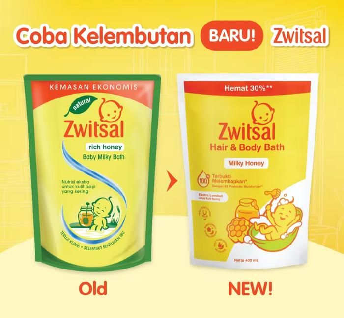 Zwitsal Natural Baby Bath Milk & Honey Pouch 450ml refill sabun bayi