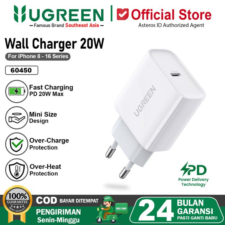 UGREEN Wall Charger Kepala Adaptor iPhone 20W 10W USB PD Fast Charging