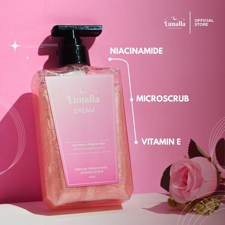 Sabun Mandi Cair Promo LUNALLA Dream Perfume Brightening Shower Scrub Sabun Mandi Cair 300ml Melembabkan dan Mencerahkan