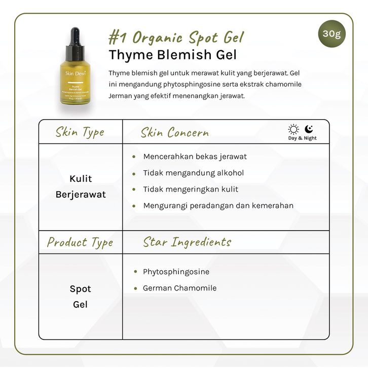 acne patch Skin Dewi - Thyme Acne Gel/ Gel Jerawat Organik/ Blemish Spot Treatment/ Totol Jerawat