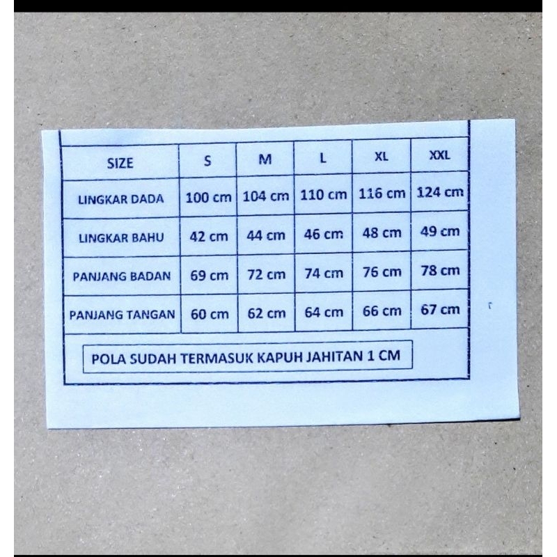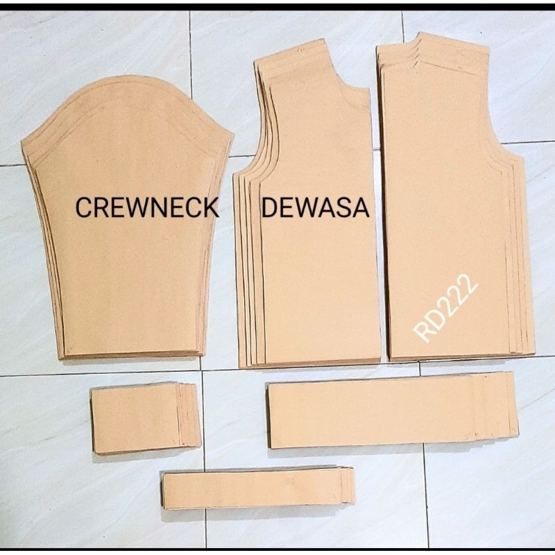 pola CREWNECK dewasa satu set isi 5 ukuran Size S M L XL XXL