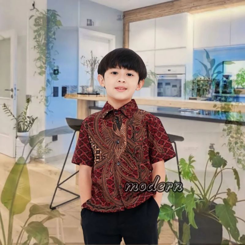 Kemeja Batik Anak - Batik Anak - Baju Batik Anak Laki Laki Umur 2-12 Tahun - Hem Batik Anak Pendek