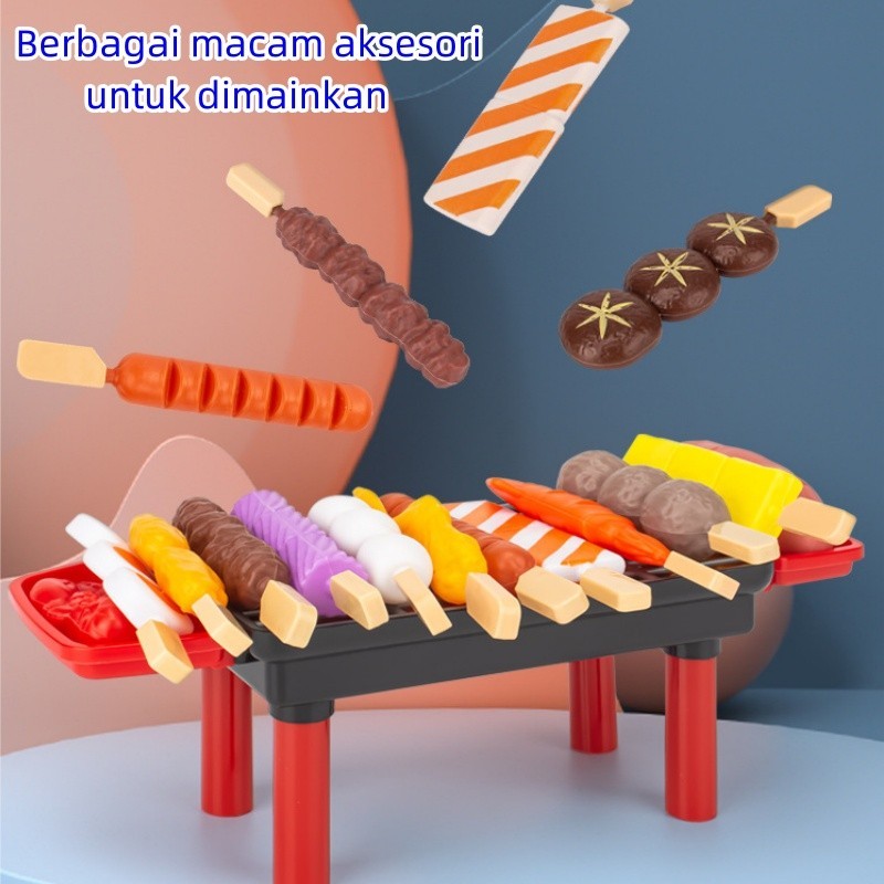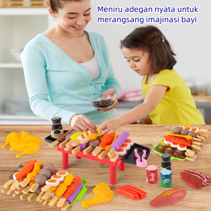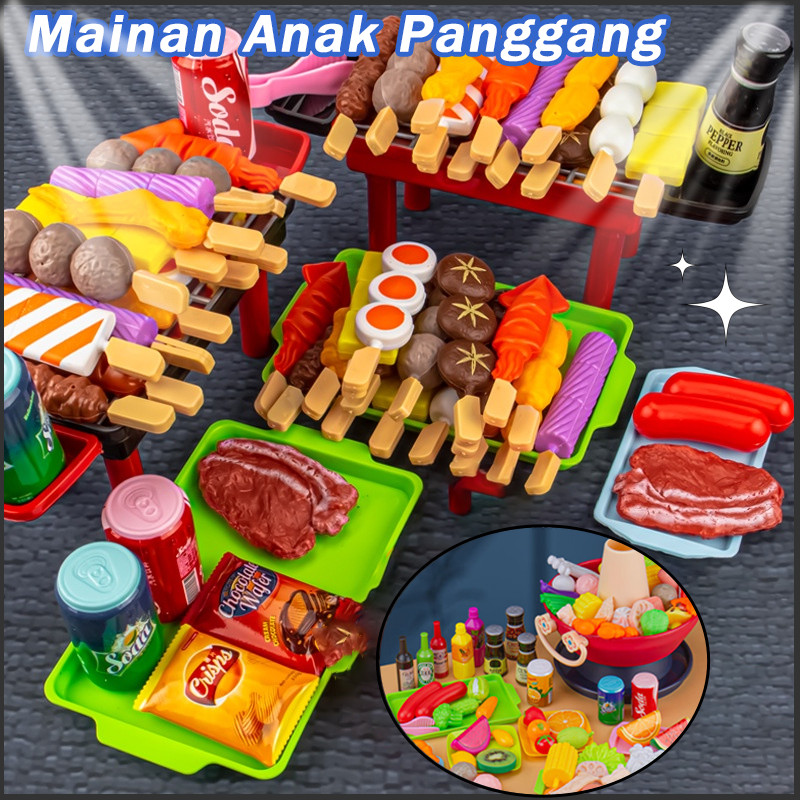 109PCS Panggangan Mainan bbq playset mainan masak Mainan Anak Perempuan Hotpot Sate Sosis Bakso Bakar Mainan /gerobag bb
