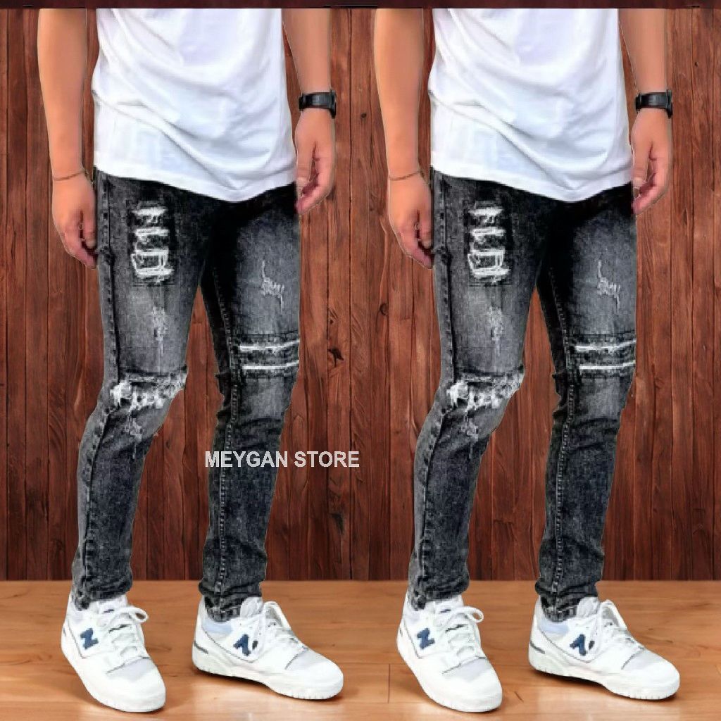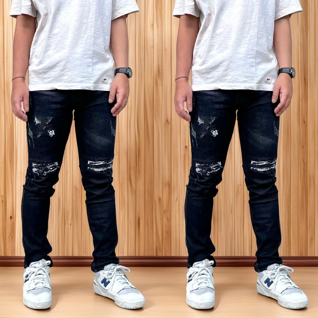 Celana Jeans Sobek Lutut Robek Ripped Hitam Premium