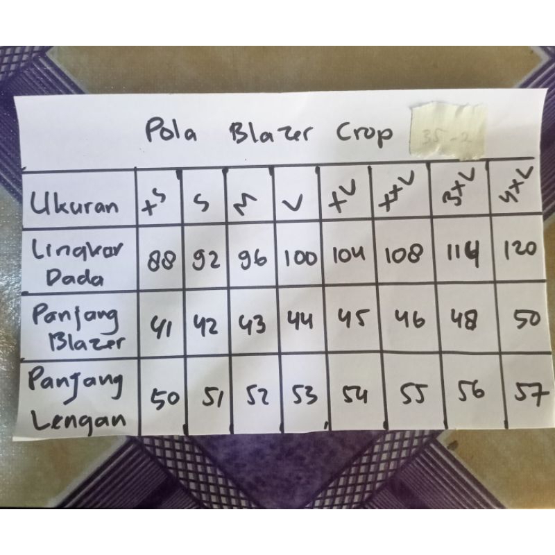 Pola Instan Baju Blazer Crop Karton Tebal S-4XL