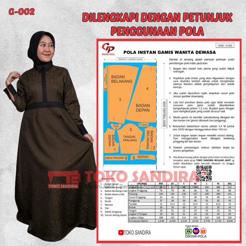 pola gamis/pola intsan gamis/pola gamis wanita/pola instan gamis wanita dewasa/pola instan murah/pola jiplak murah/pola