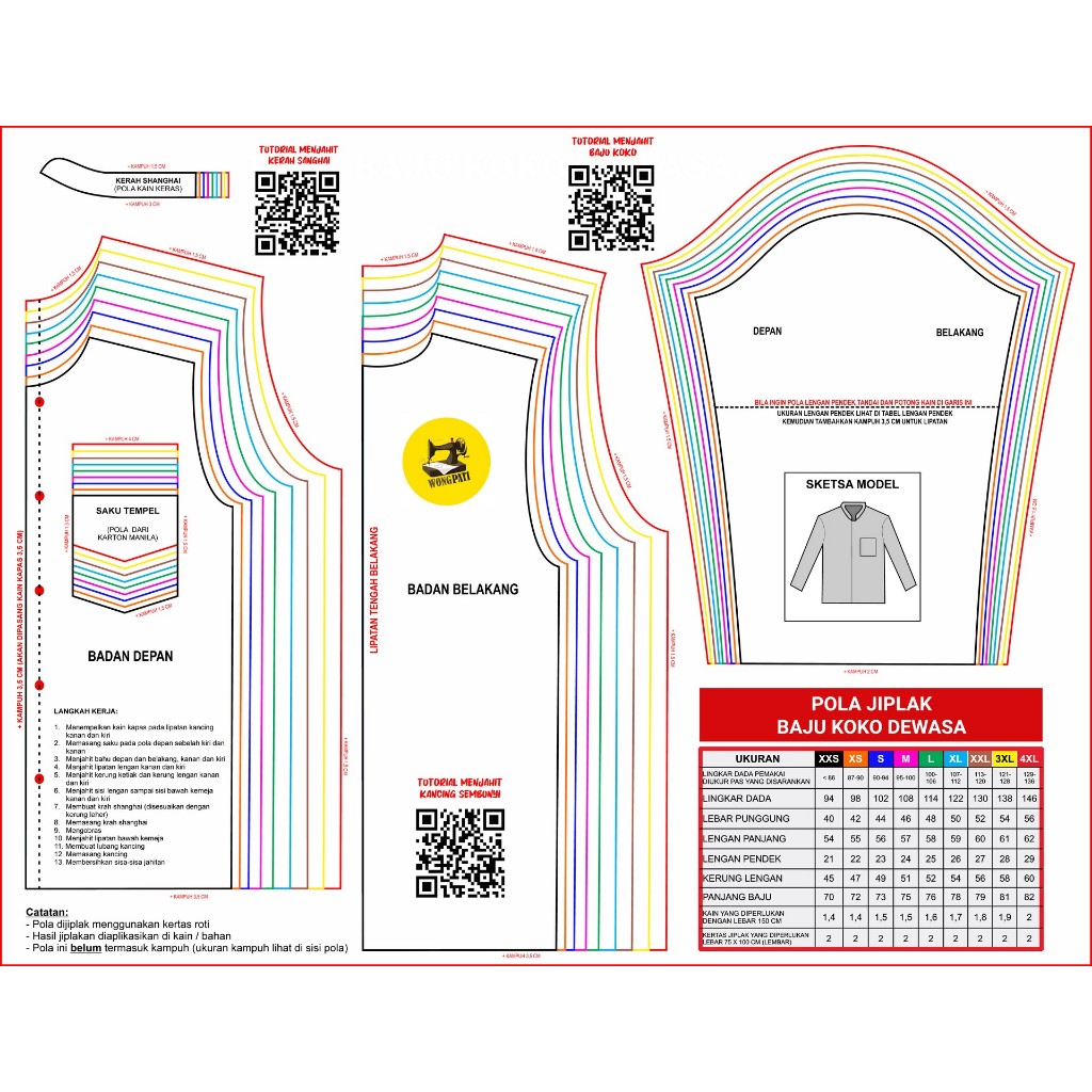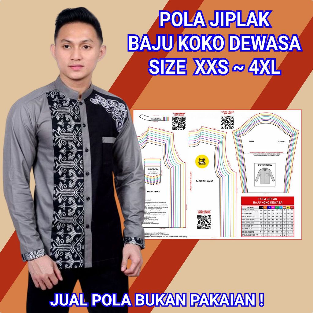 POLA JIPLAK BAJU KOKO DEWASA | POLA MENJAHIT SEWING PATTERN
