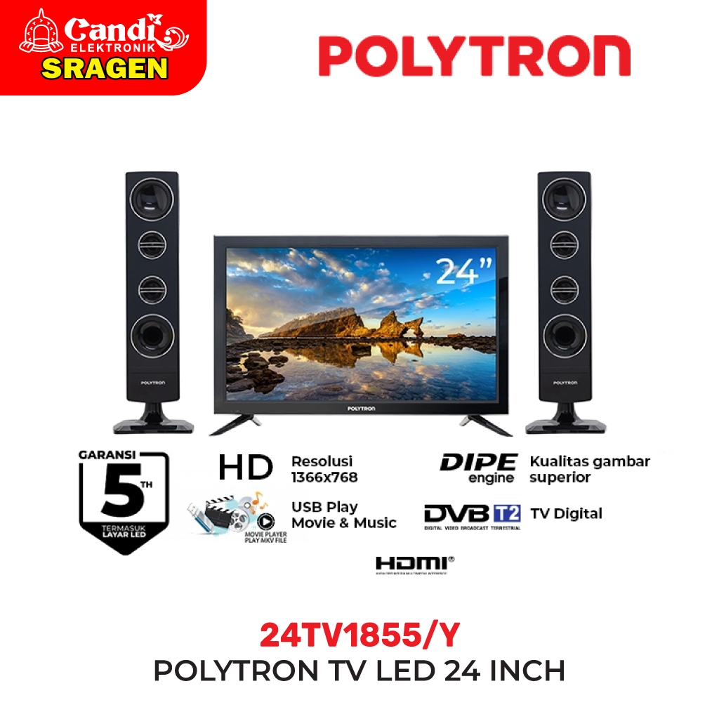 [Star] POLYTRON Led Tv 24 Inch Digital Cinemax Sound Tower - 24TV1855/Y