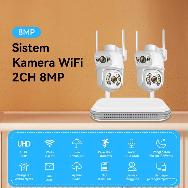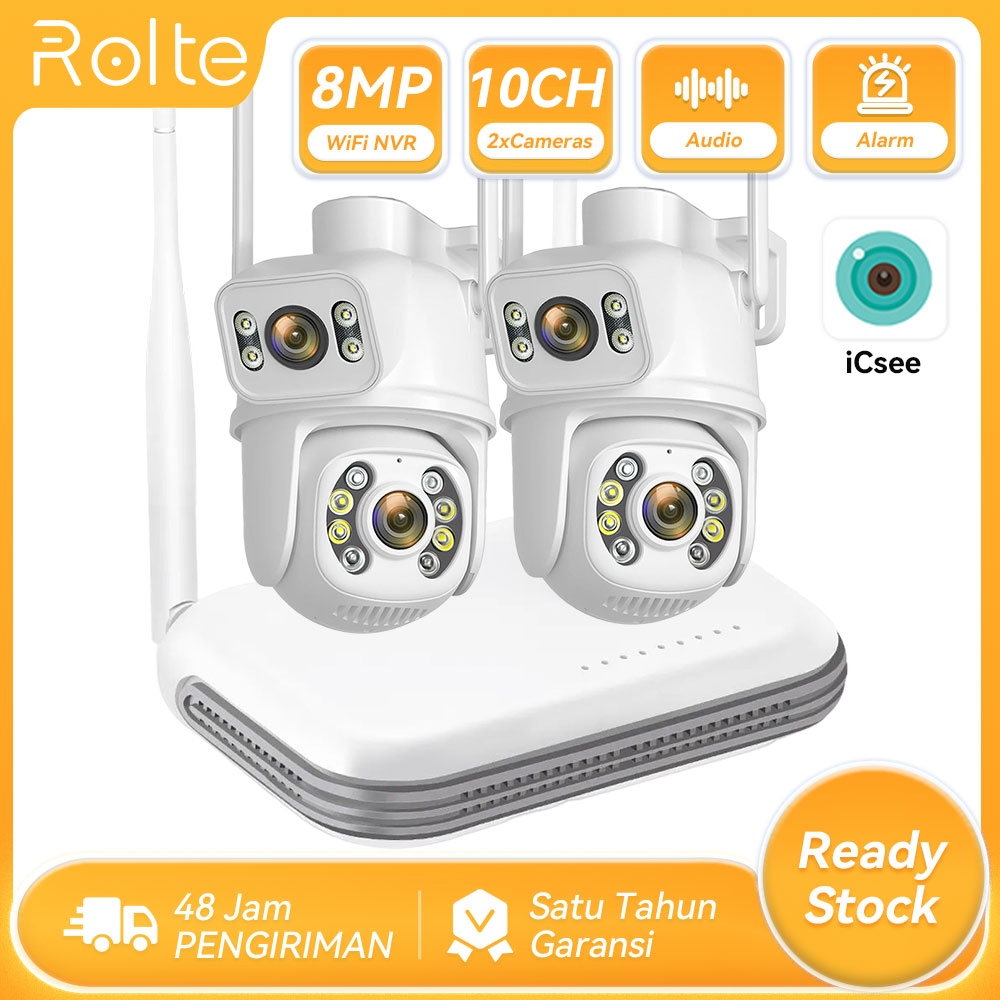 [Star] Rolte 8MP Pakte CCTV 10 Channel WiFi NVR 2 Kamera WiFi PTZ Dual Lens Color Night Vision iCsee APP