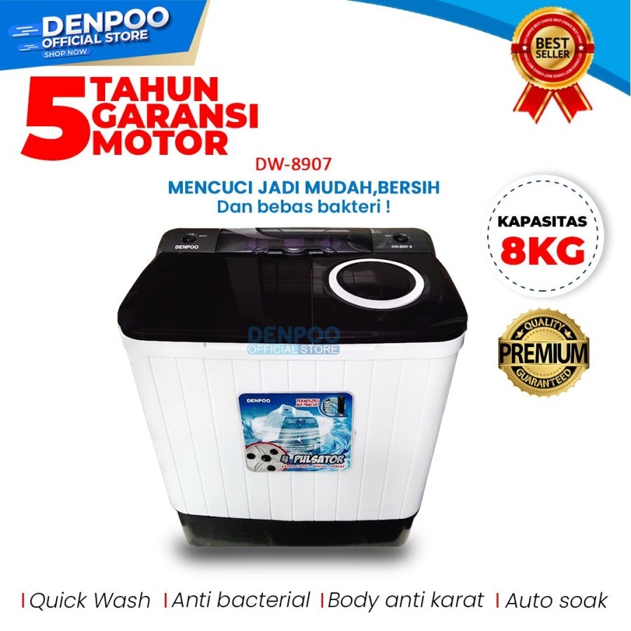 [Star] DENPOO MESIN CUCI DW 8907 4P 8KG 2 TABUNG