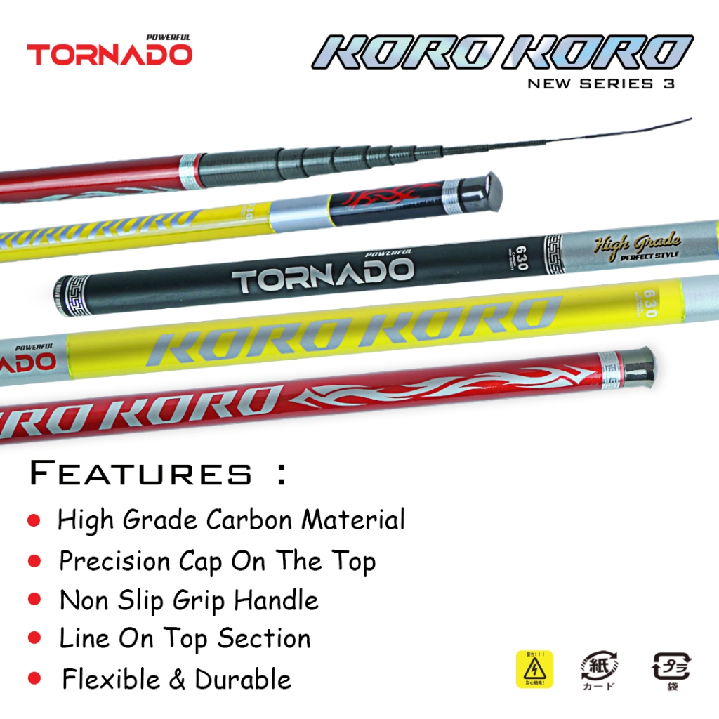 TEGEK Tornado Koro Koro 300CM - 720CM Joran Pancing Tegeg Ruas Pendek Material Carbon