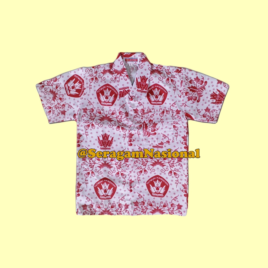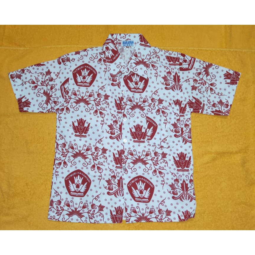 Baju Seragam Batik Merah SD Lengan Pendek Oxford