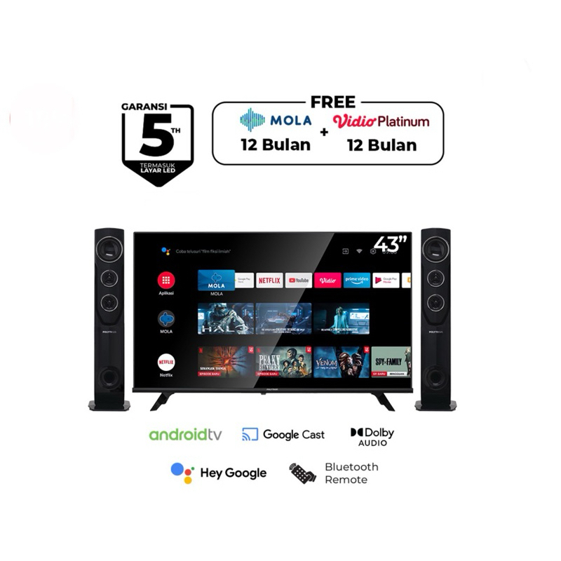 [Star] Led Polytron 43 Inch Smart Android TV Tower Speaker PLD-43TA5055 / Polytron 43 Inch Android TV