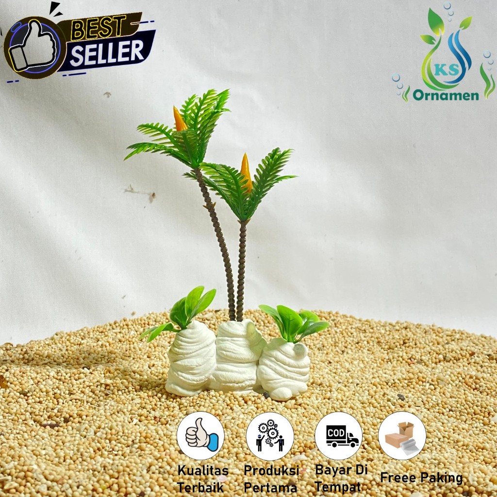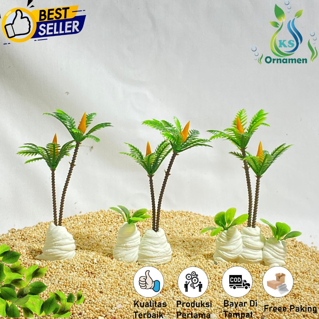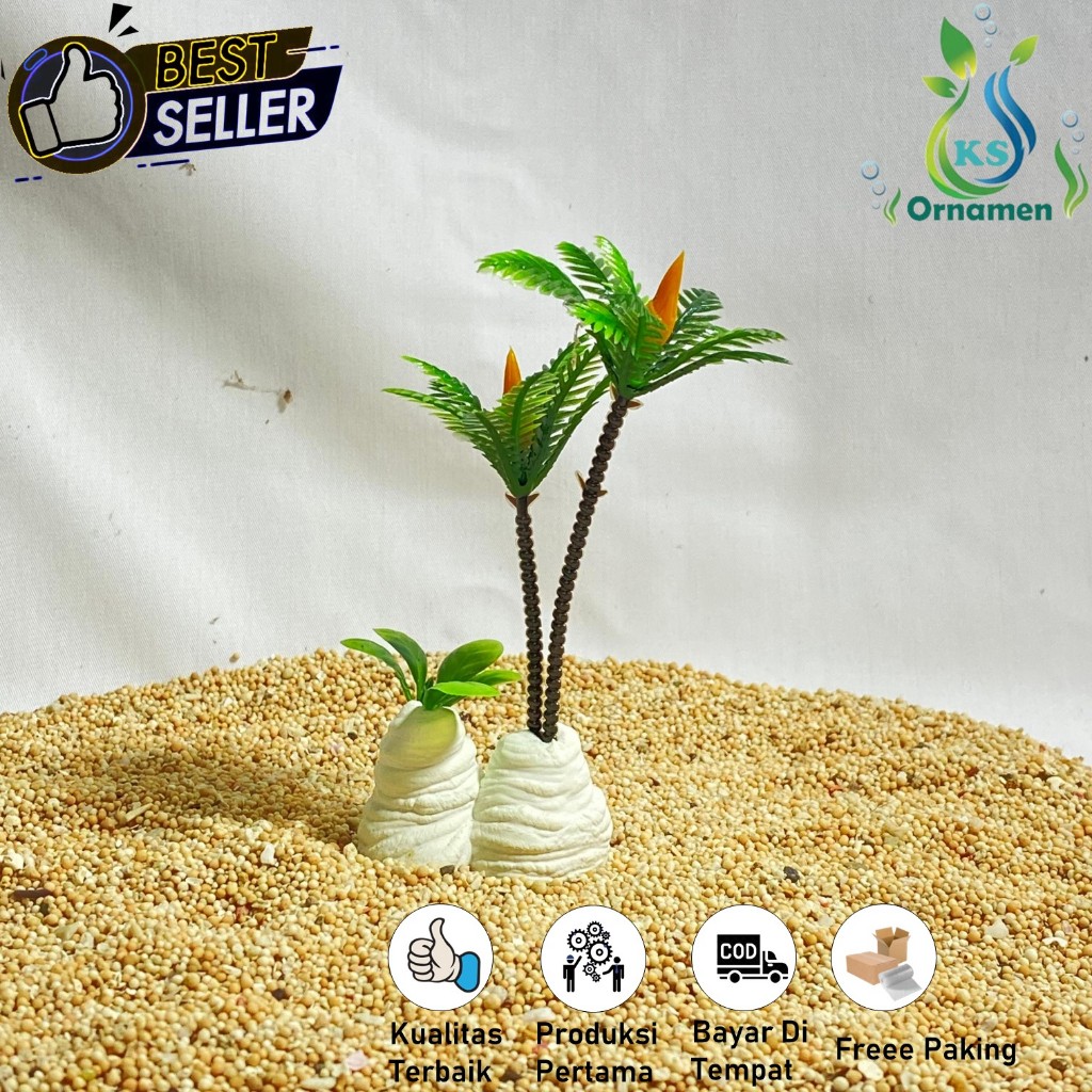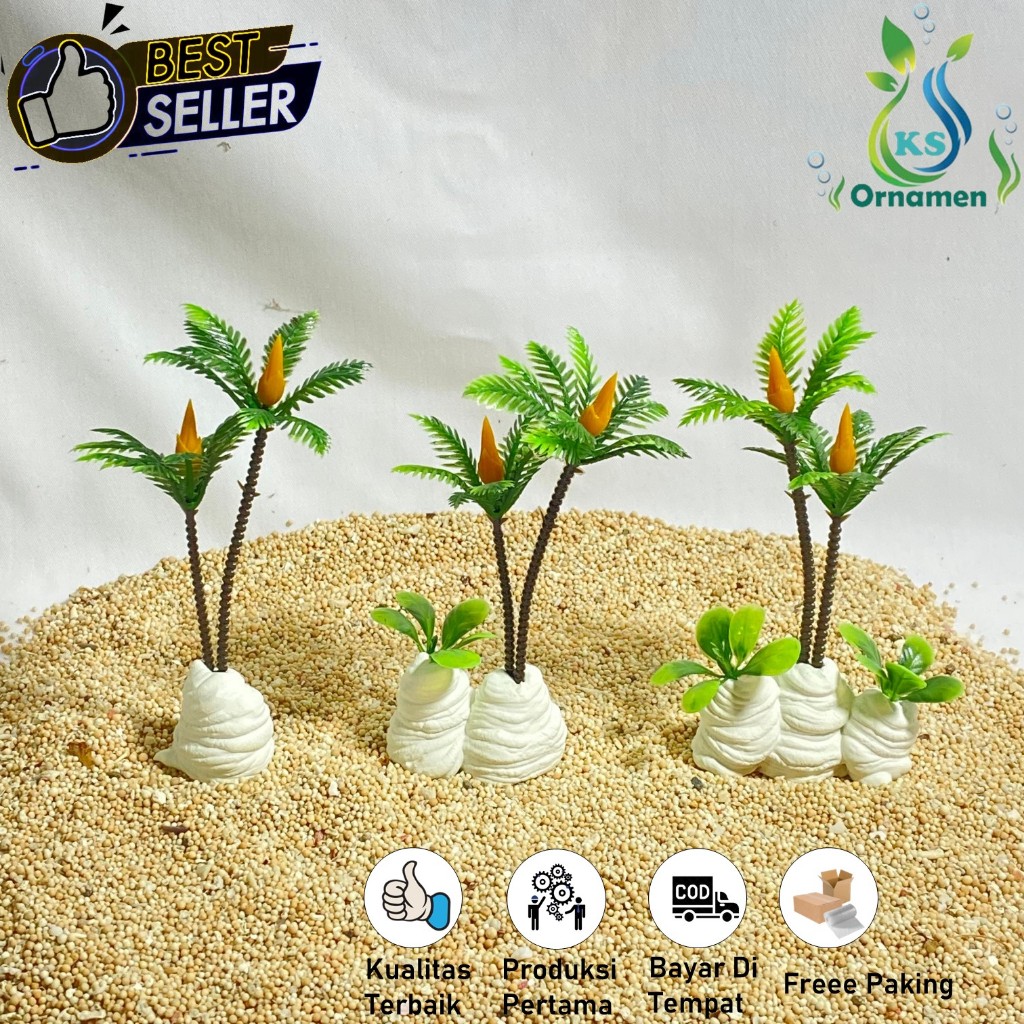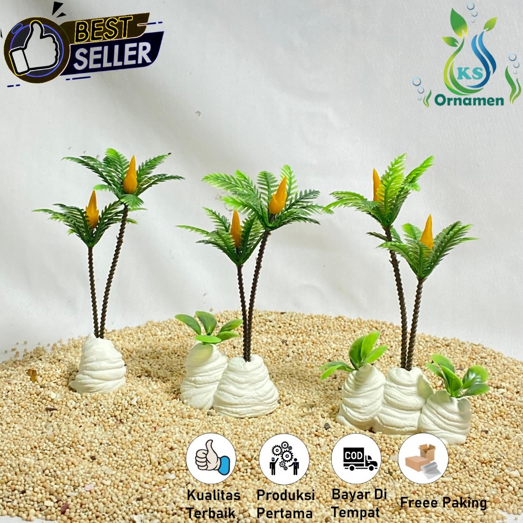 Hiasan Aquarium Dekorasi Ornamen Aquascape miniatur Pohon Kelapa cantik