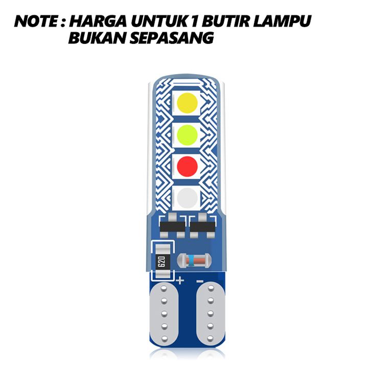 LAMPU LED T10 W5W SILICA GEL 4 WARNA RUNNING FLASH KEDIP DC 12V SENJA REM