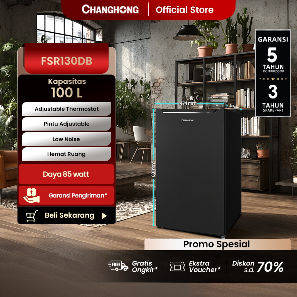 [Star] Changhong Kulkas 1 pintu (Refrigerator) Lemari Es Kapasitas 100 Liter – Black FSR130DB