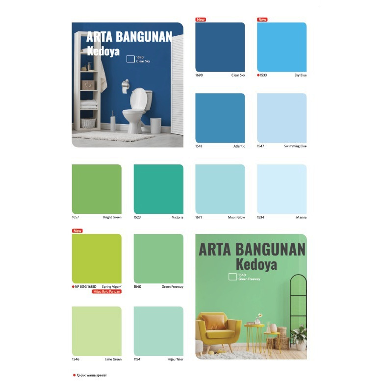 1505 Putih, 1657 Bright Green, 1523 Victoria, 1549 Copper Grey, 1541 Atlantic, 1556 Cafe Latte, 1524 Fresh Green, 1560 Sand Storm, 1185 Hibiscus, 1526 Blue Beauty