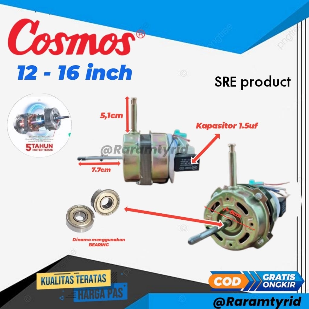 DINAMO KIPAS ANGIN COSMOS (STANDFAN) DOUBLE BEARING 12-16 INCH DINAMO MESIN KIPAS ANGIN