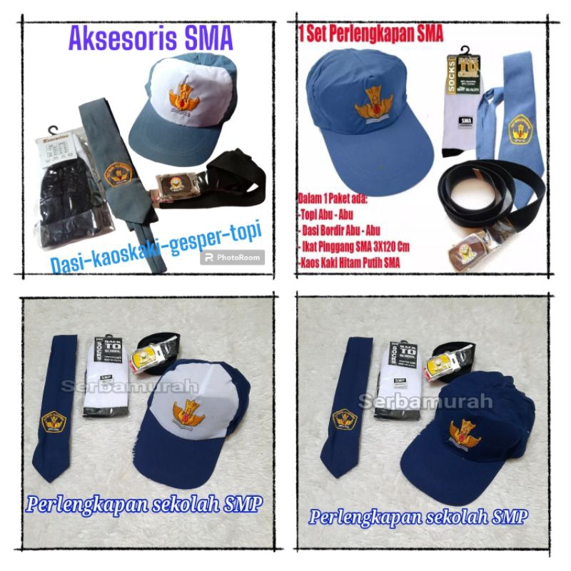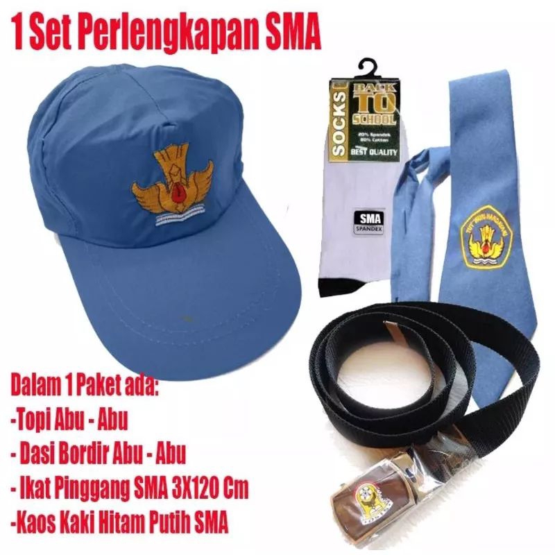 Perlengkapan alat sekolah SMP DAN SMA topi/dasi/gesper/dasi