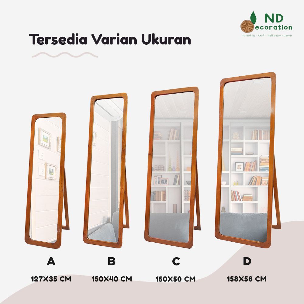 Jati Belanda Oval Pengiriman Seluruh Indonesia - Standing Mirror - Cermin Berdiri - Cermin Aesthetic - Cermin Gantung