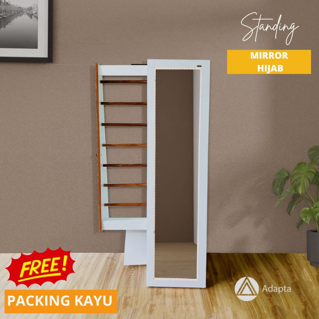 Adapta - Standing Mirror Full Body dengan Rak Hijab dan Makeup - Cermin dan Lampu LED -MIRA-A1/A2/A3