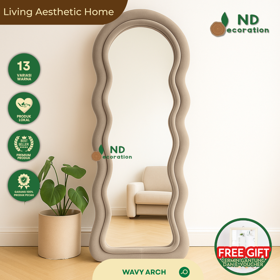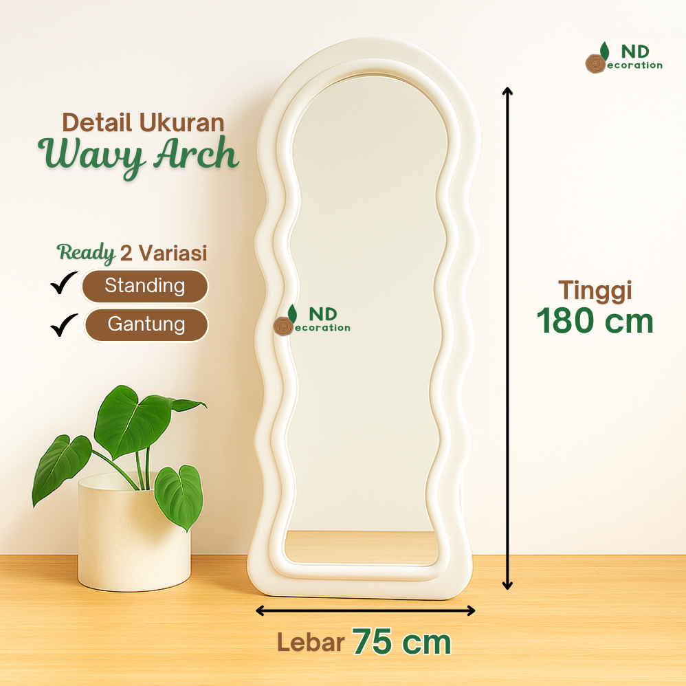 Standing Mirror Aesthetic Wavy Arch 180x75 Full Body Modern Minimalis Dan Kekinian Cermin Gantung