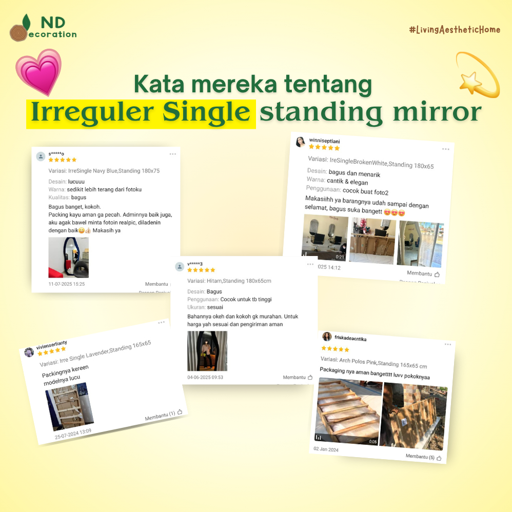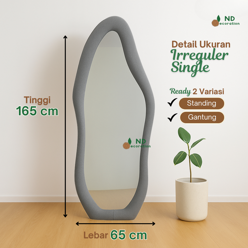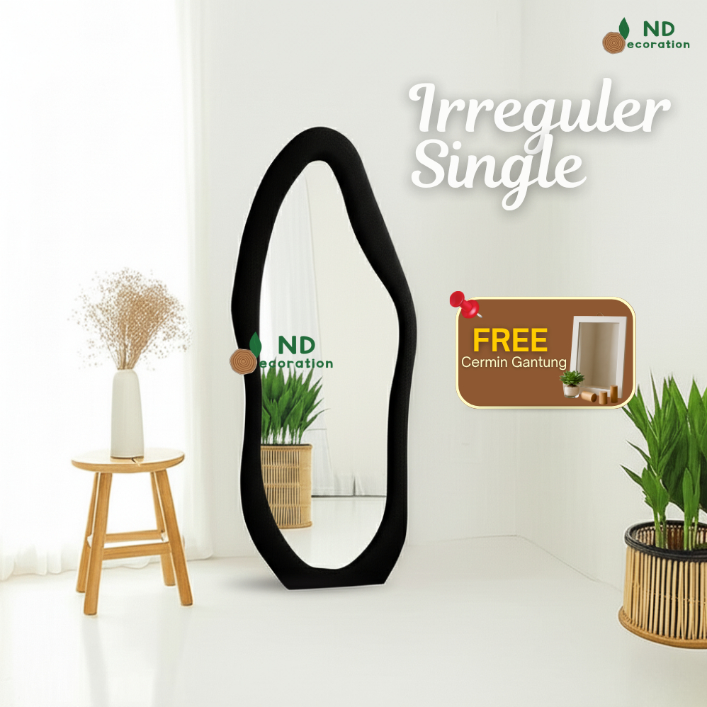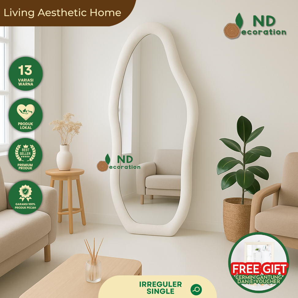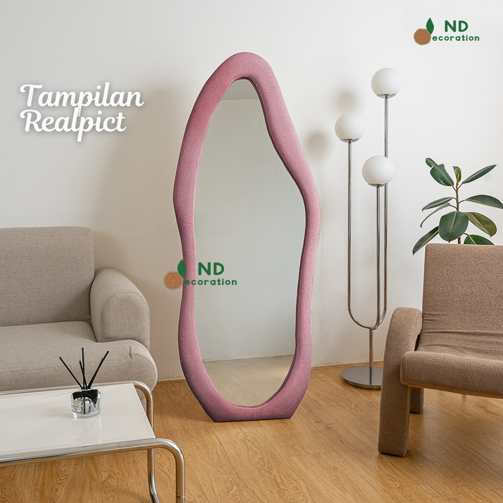 Irreguler Single Wavy mirror/Cermin Aesthetic/Standing Mirror Aesthetic/Irregular Standing Mirror