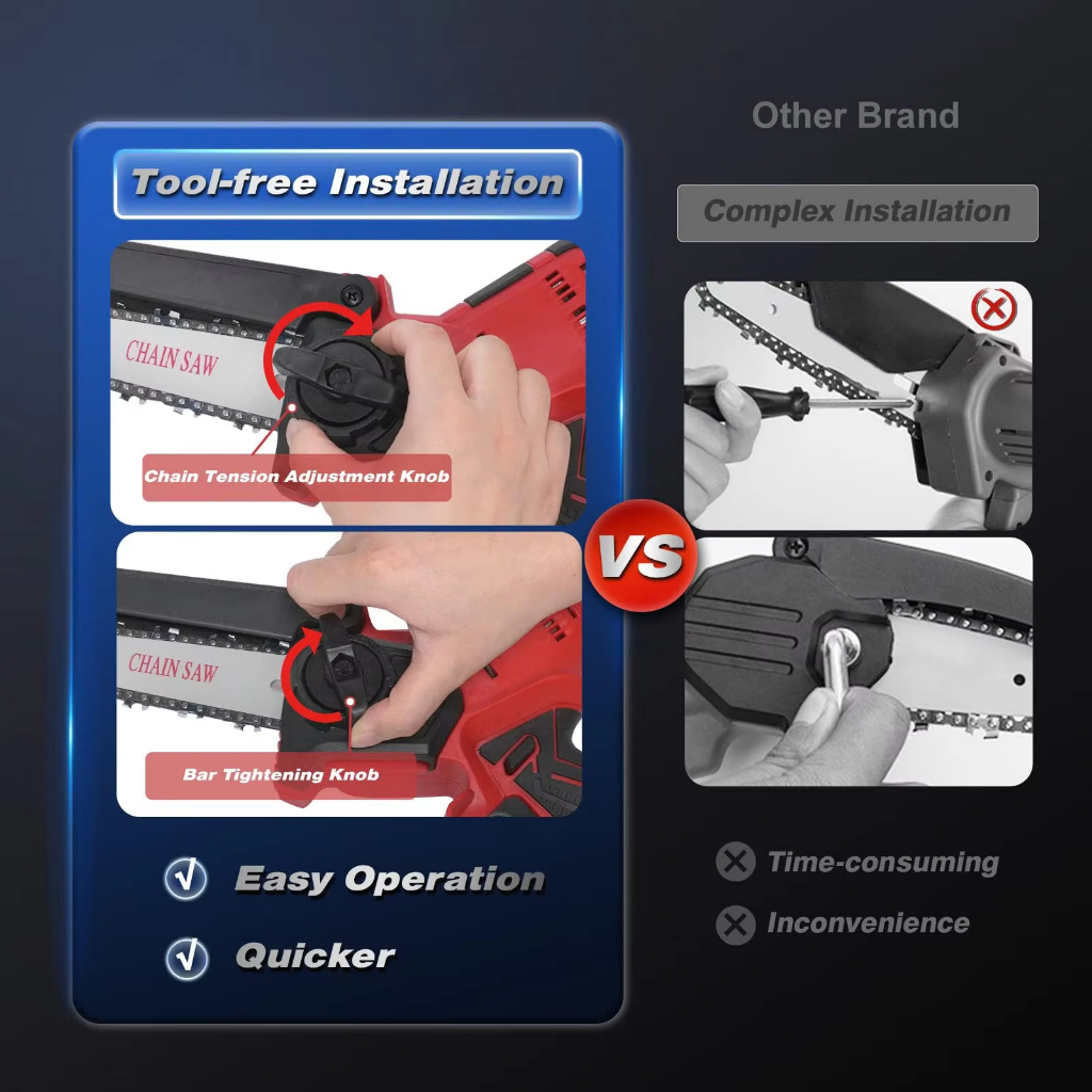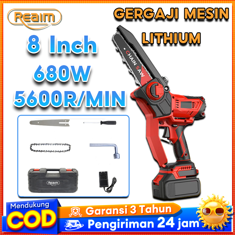 Reaim Cordless Chainsaw 8" Gergaji Mesin Lithium Gergaji Rantai Elektrik Portable Genggam