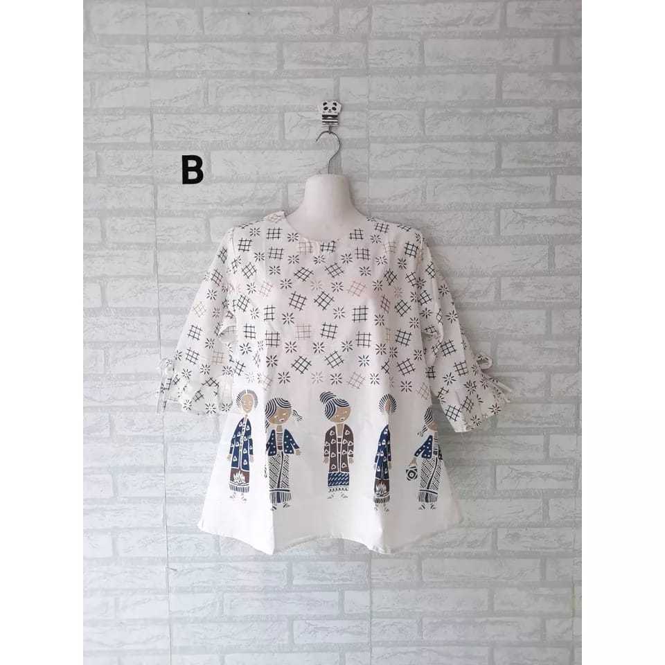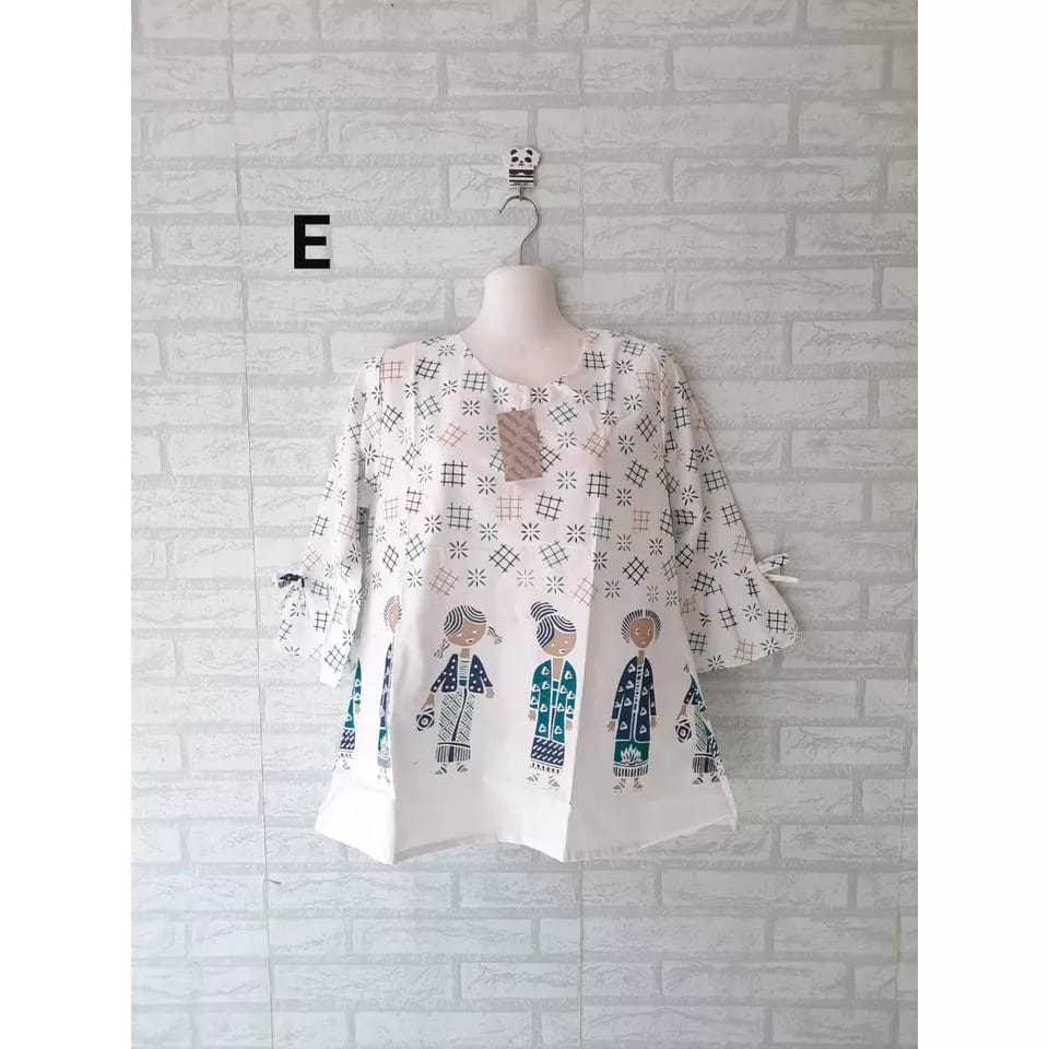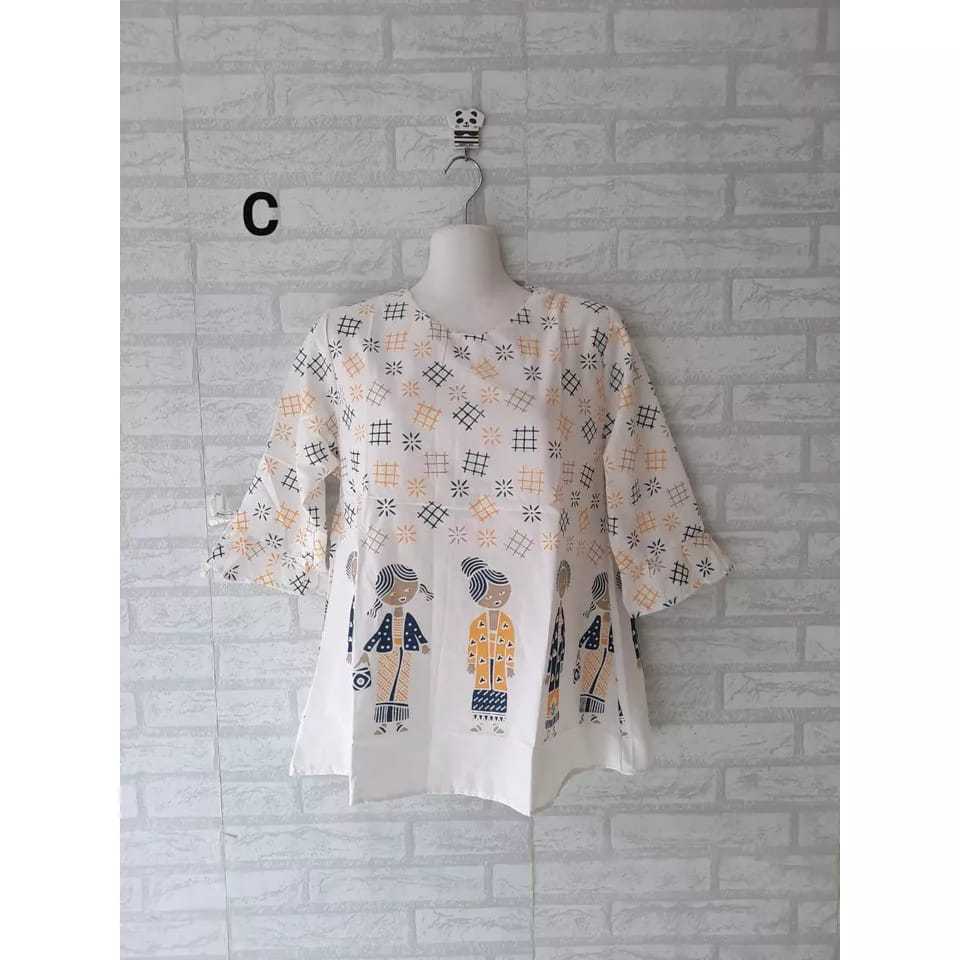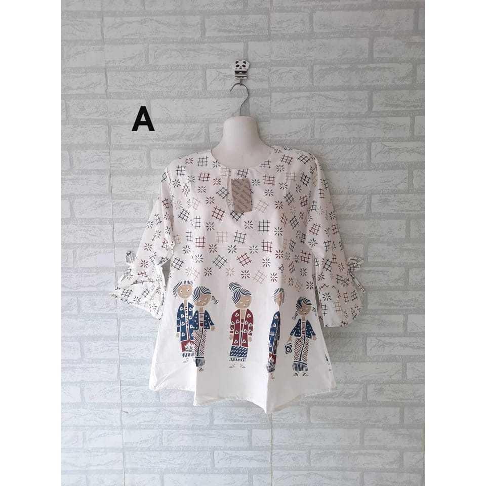 Blouse Atasan wanita Batik Kantoran Lengan 3/4 Vintage Bahan Katun Halus Jumputan Solo Terbaru 2025