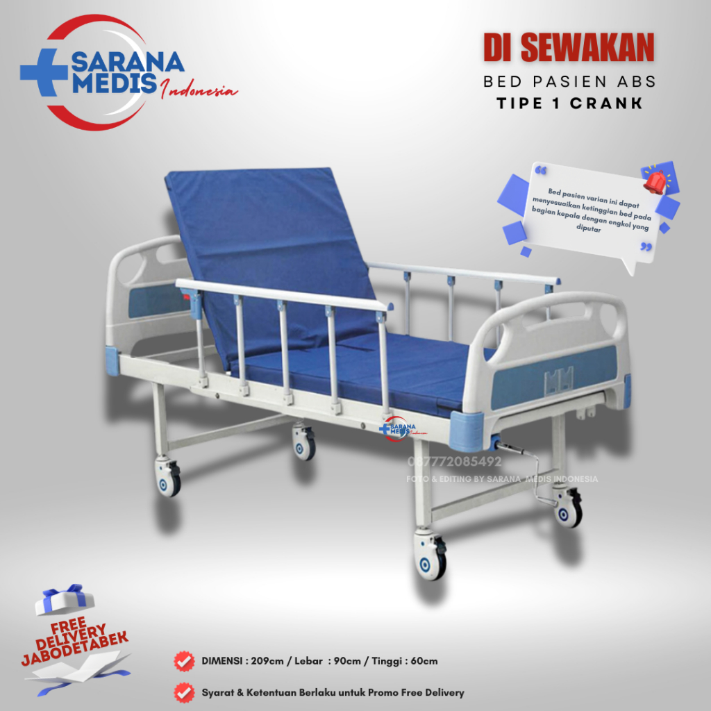 Rental Bed Pasien (Tipe abs 1 crank) - Sewa Tempat Tidur Rumah Sakit 1 Engkol