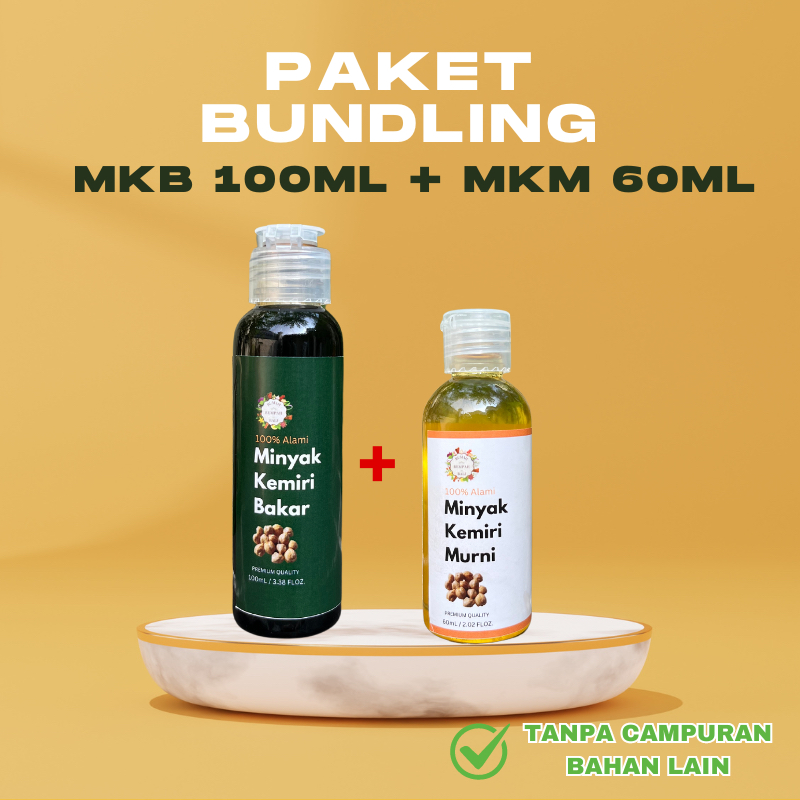 Minyak Kemiri Penumbuh Rambut Paket Bundling Kemiri Bakar 100ml dan Minyak Kemiri Murni 60ml