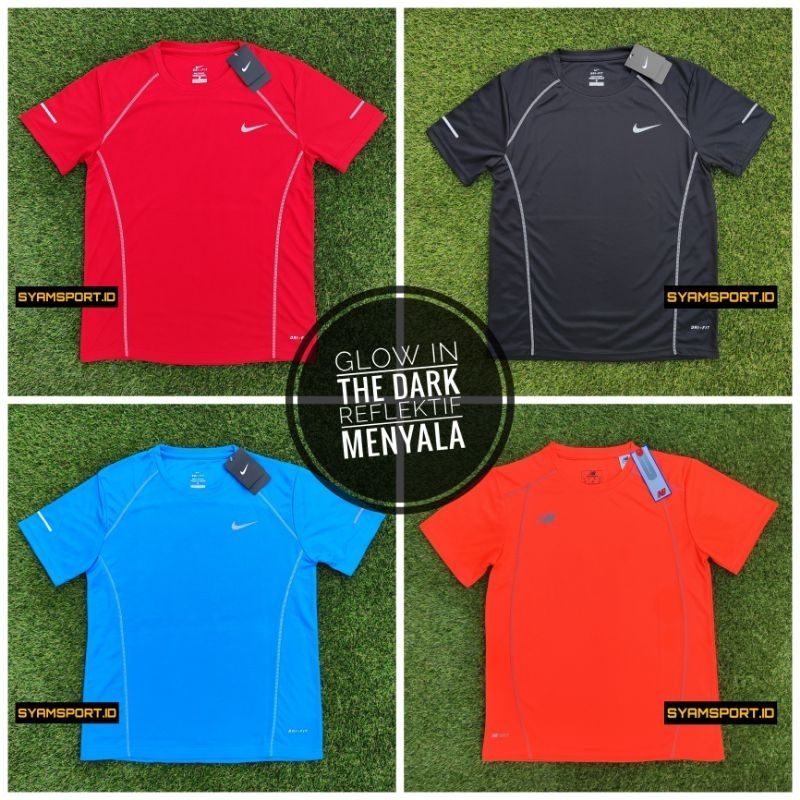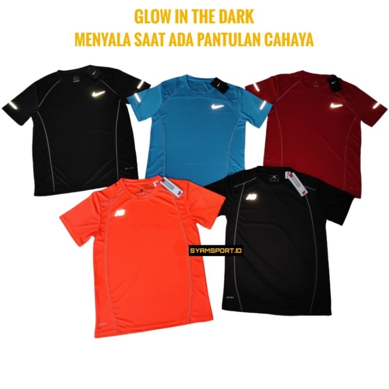 Baju Olahraga Running Gym Senam DRY-FIT POLYESTER Glow In The Dark Reflektif Menyala / Atasan Olahraga GO Pria / Baju Olahraga Pria