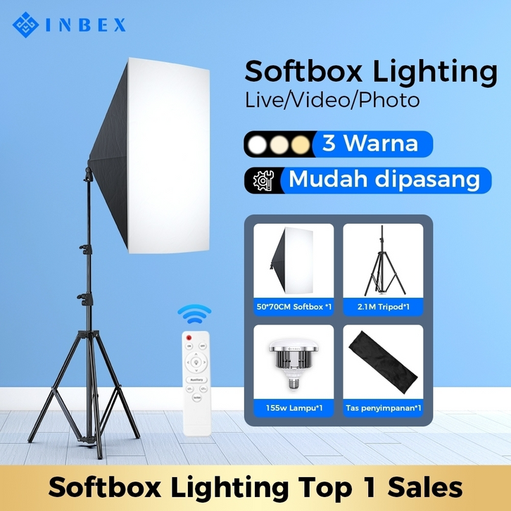 LIGHTING STUDIO KONTEN SOFTBOX 5500K POTRET FOTOGRAFI 50X70CM LAMPU KONTEN 3 WARNA