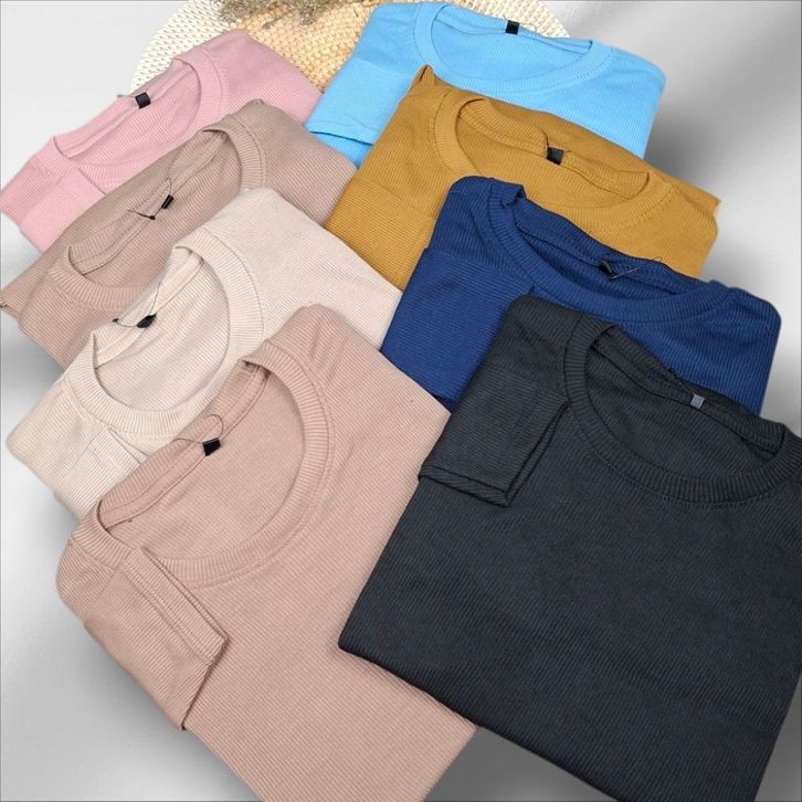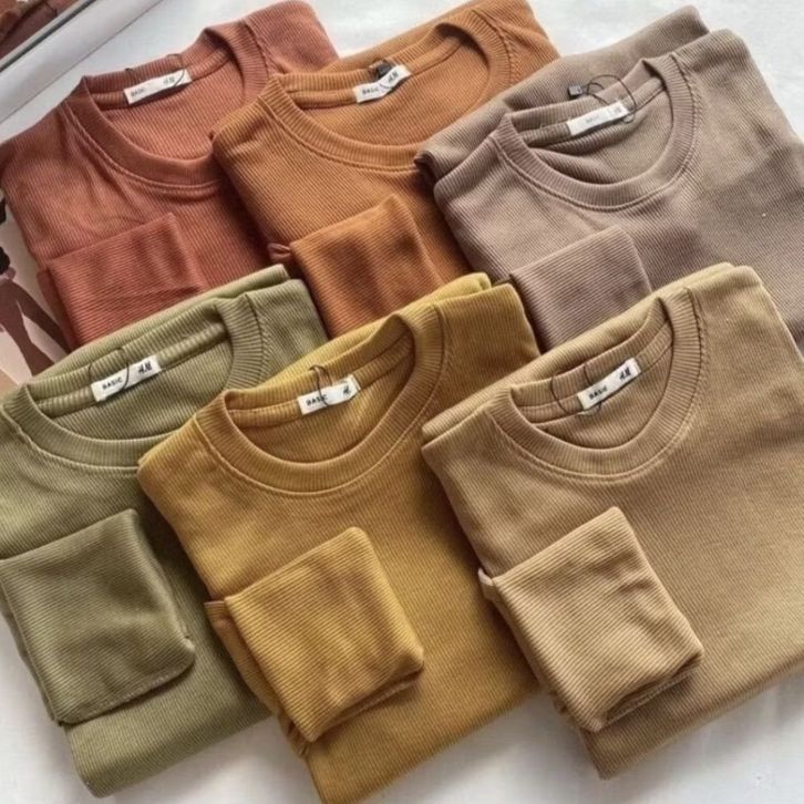 Kaos Oblong Rib Premium Lengan Panjang Wanita