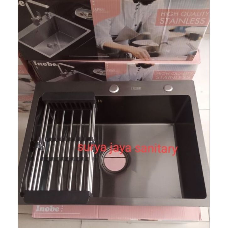 Kitchen Sink INOBE 6045 hitam Tirisan Tarik / Kitchen sink 1 lubang INOBE 6045 hitam