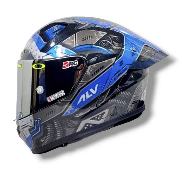 Helm Motor Half Face Helm ALV GENESIS MOTIF CYBORG BLUE Kaca Visor Silver | Helm Full Face Premium Pria dan Wanita