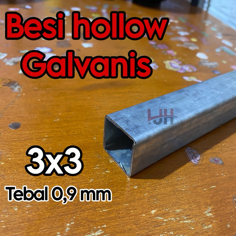 Besi hollow galvanis 3x3 ketebalan 0,9mm . besi holo kotak ukuran panjang mulai dari 10cm sampai 100cm